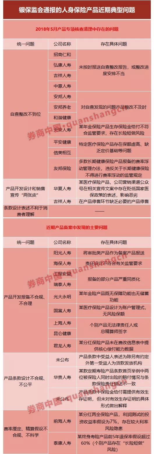 该项通报,源自2018年5月银保监会启动的寿险行业的产品专项核查清理工作,银保监会曾表示将根据自查及抽查情况进行通报,如今通报结果出炉。